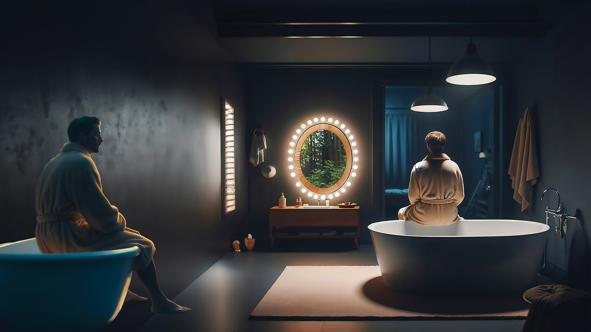 The installation “Incomunicabilità” consists of 8 photographs artificially created using artificial intelligence tools and photo editing programs. Despite the different locations and the protagonists, there is a common thread between the photos that invites us to reflect on moments in which the dialogue is lost, leaving room for an increasingly pressing and silent void. Walls, both real and mental, multiply and hide possible solutions, making communication even more difficult. Every photograph has walls that divide, even when the characters are in the same environment. Sometimes, these walls show glimmers or gaps that allow us to glimpse the idealization, the solution or a salvific reality. This world, desired but unattainable, could be represented by nature, where communication was possible and healing. rretrievable due to inability or fear.